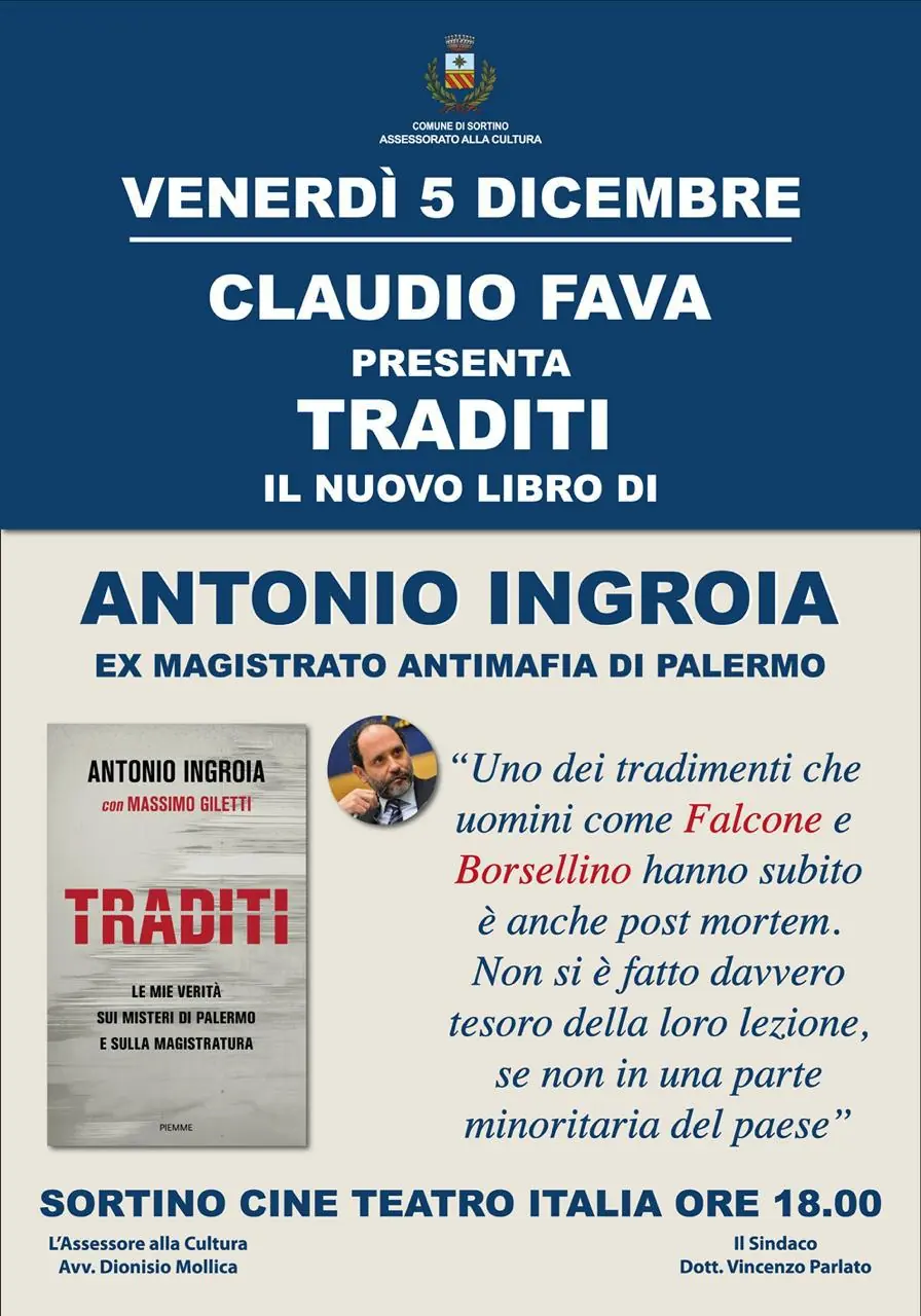 Presentazione del libro “Traditi” di Antonio Ingroia (inizio ore 18.00)